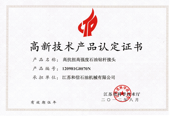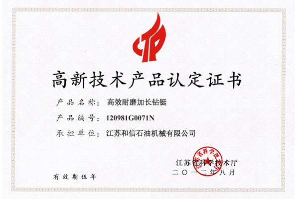 高新技术产品认定证书-加长钻铤