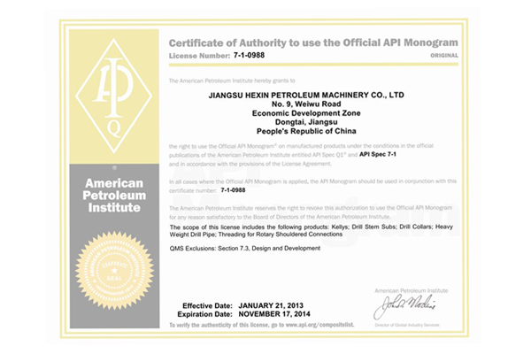 一体化加重钻杆证书
