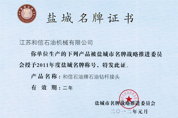 盐城名牌证书